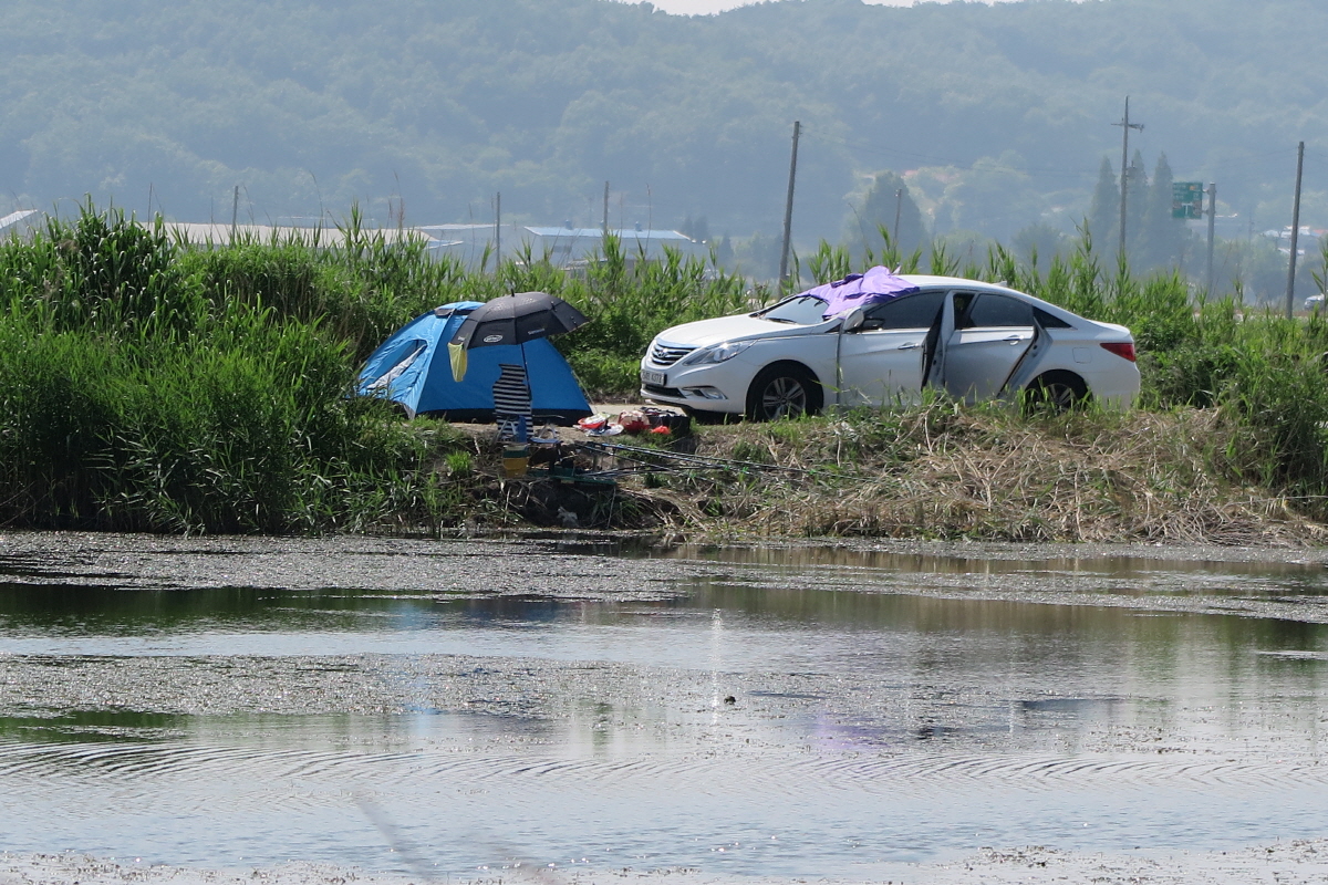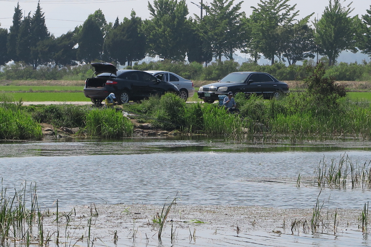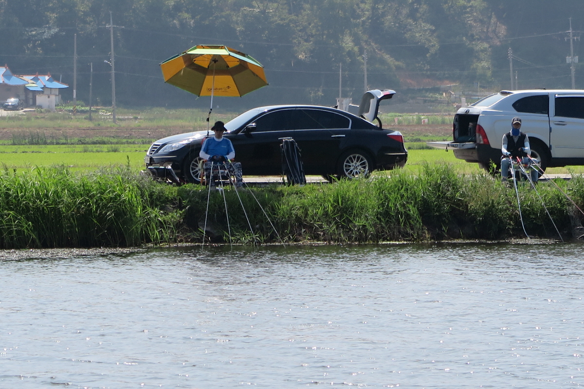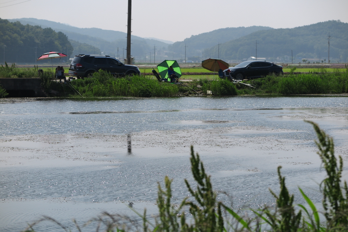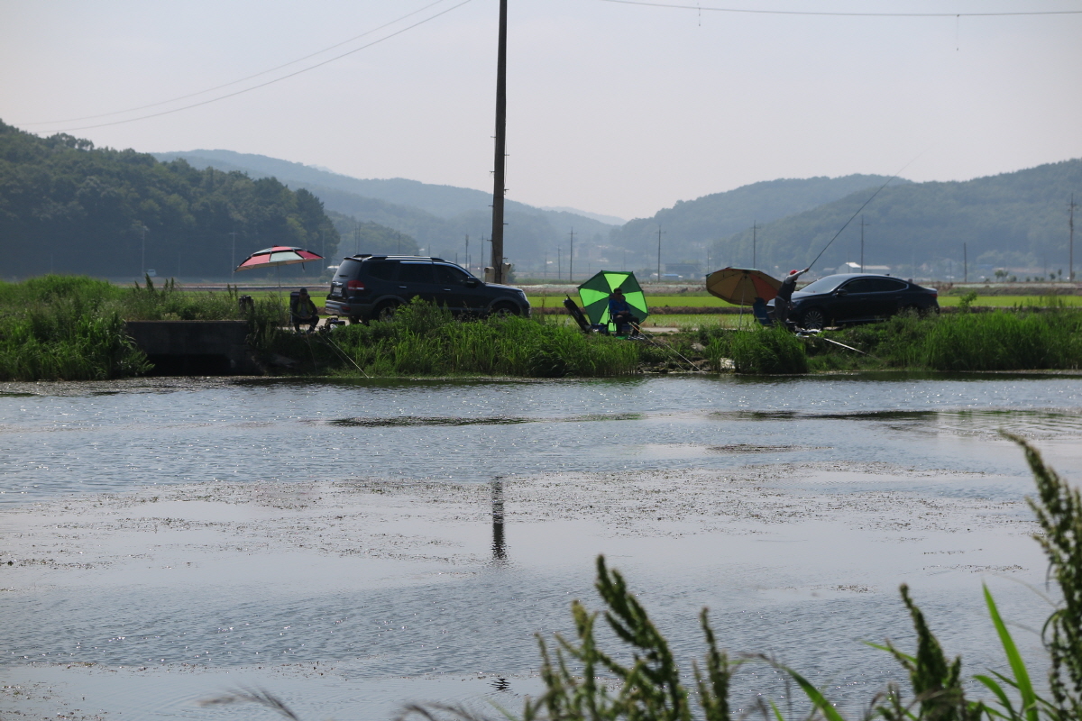 수로 양옆으로 차량 진입이 용이하여 가족터 또는, 휴가철 낚시터로 손색이 없다.