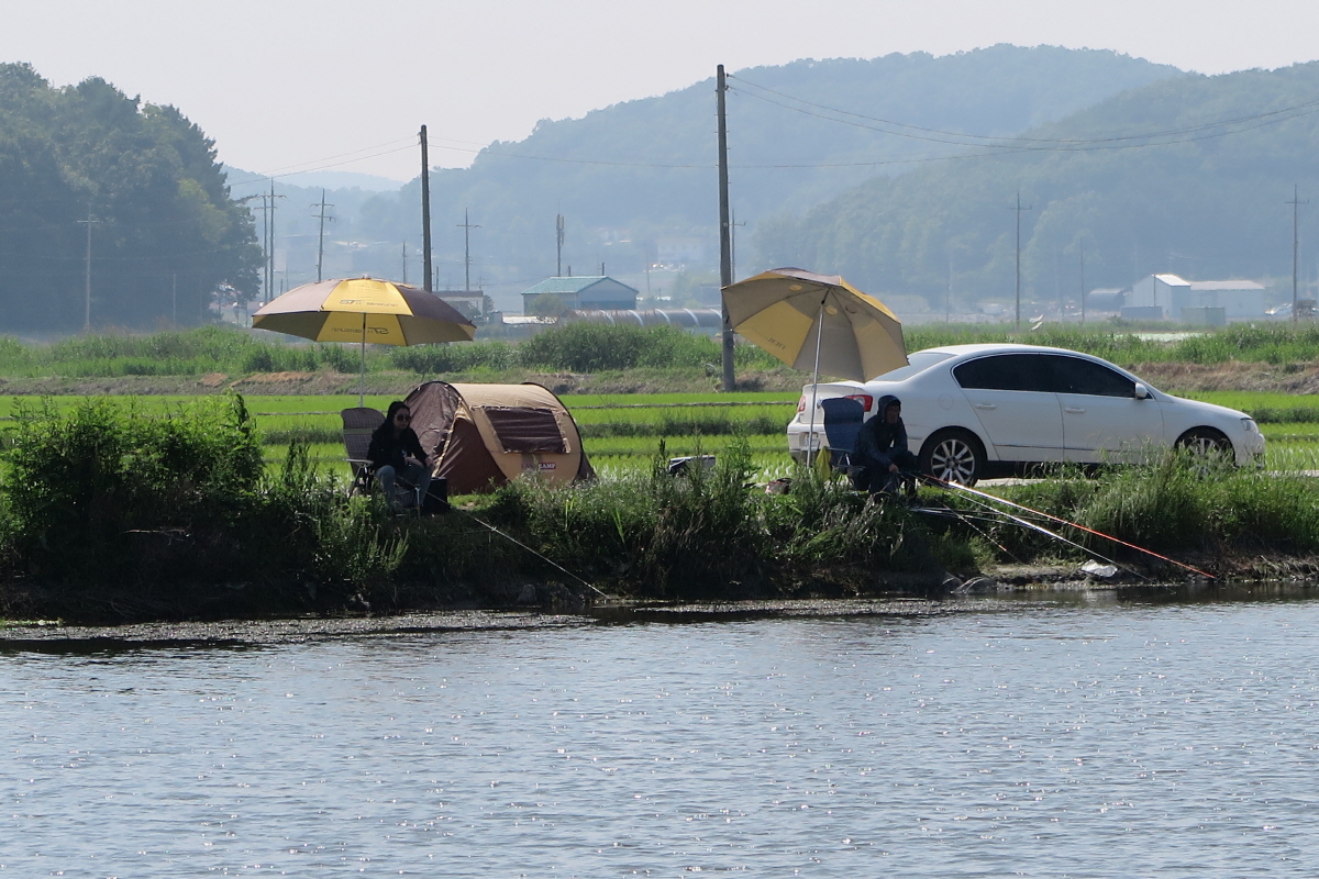 수로폭이 넓고 주차할곳이 많아 캠핑낚시가 가능하다.
